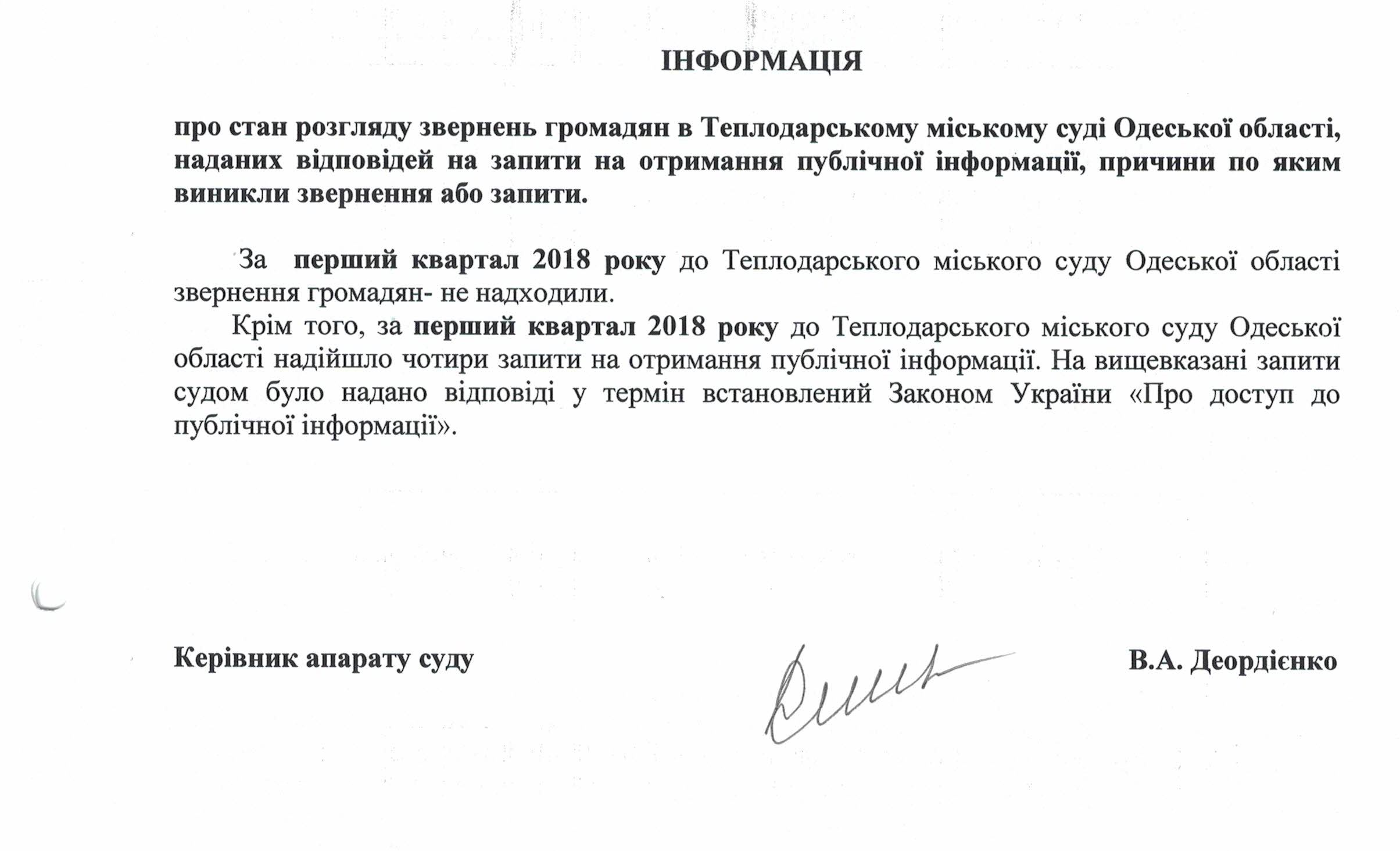 Інформація про стан розгляду звернень громадян, наданих відповідей на запити на отримання публічної інформації, причини по яким виникли звернення або запити